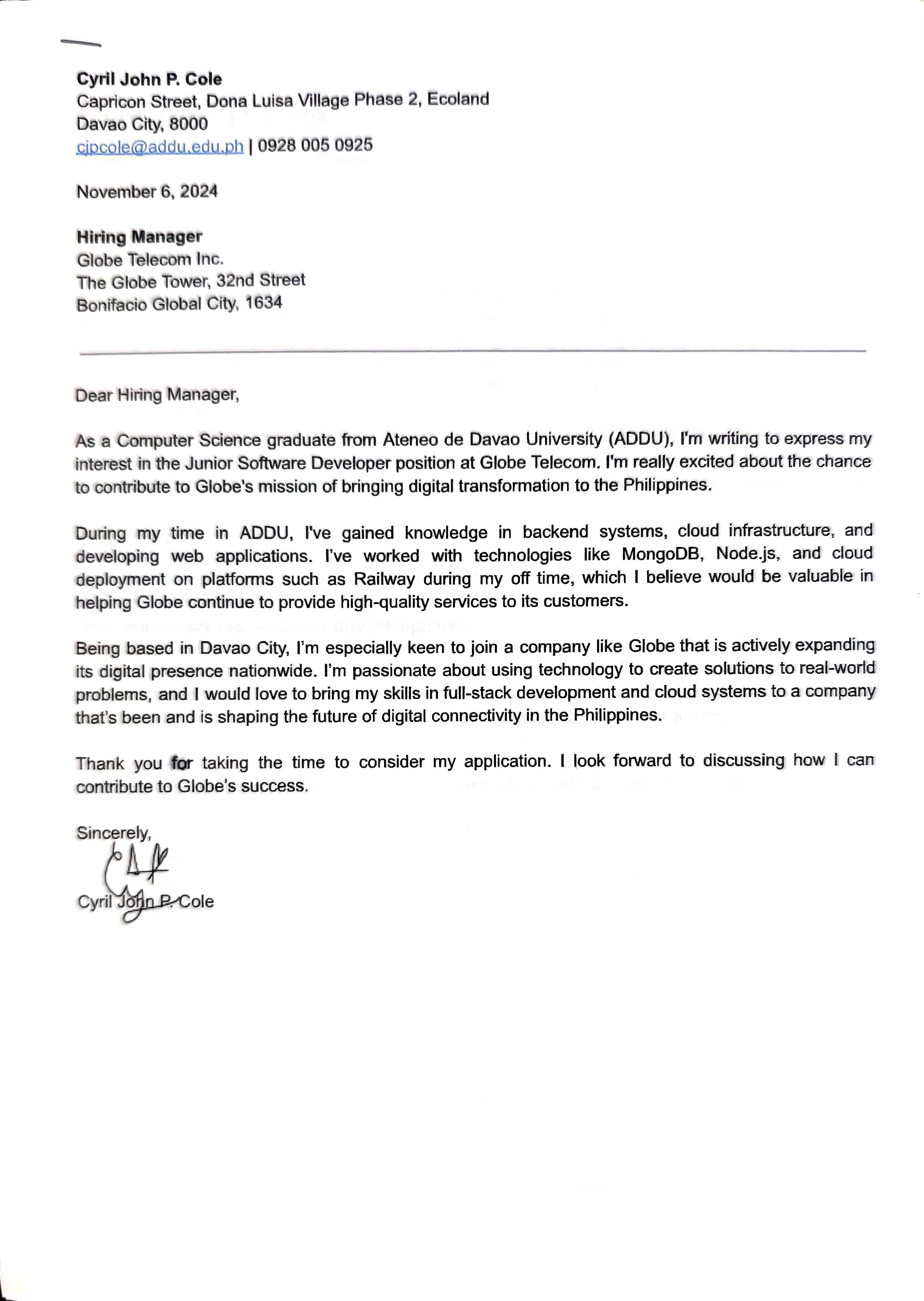 cover letter