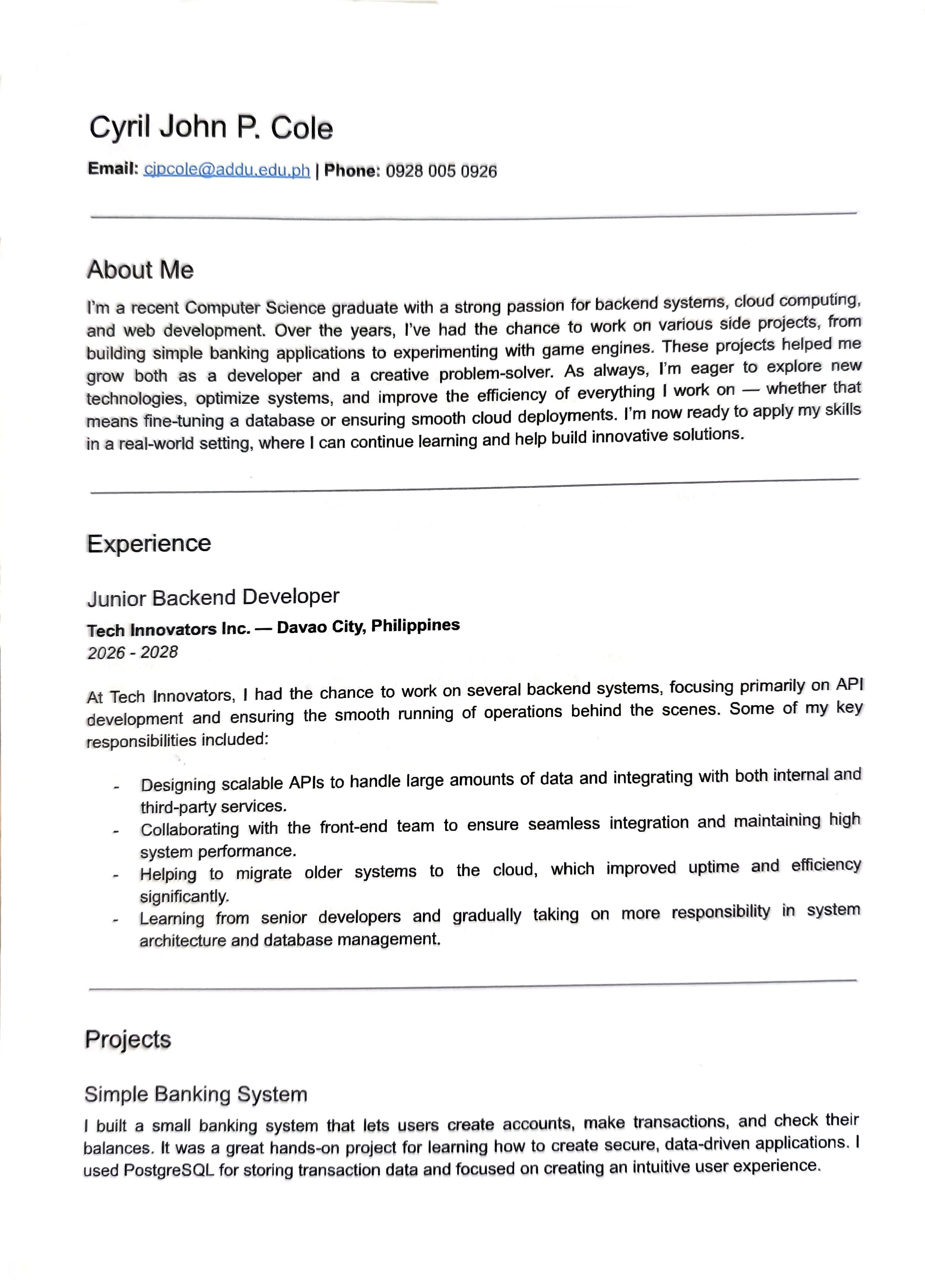resume, page 1